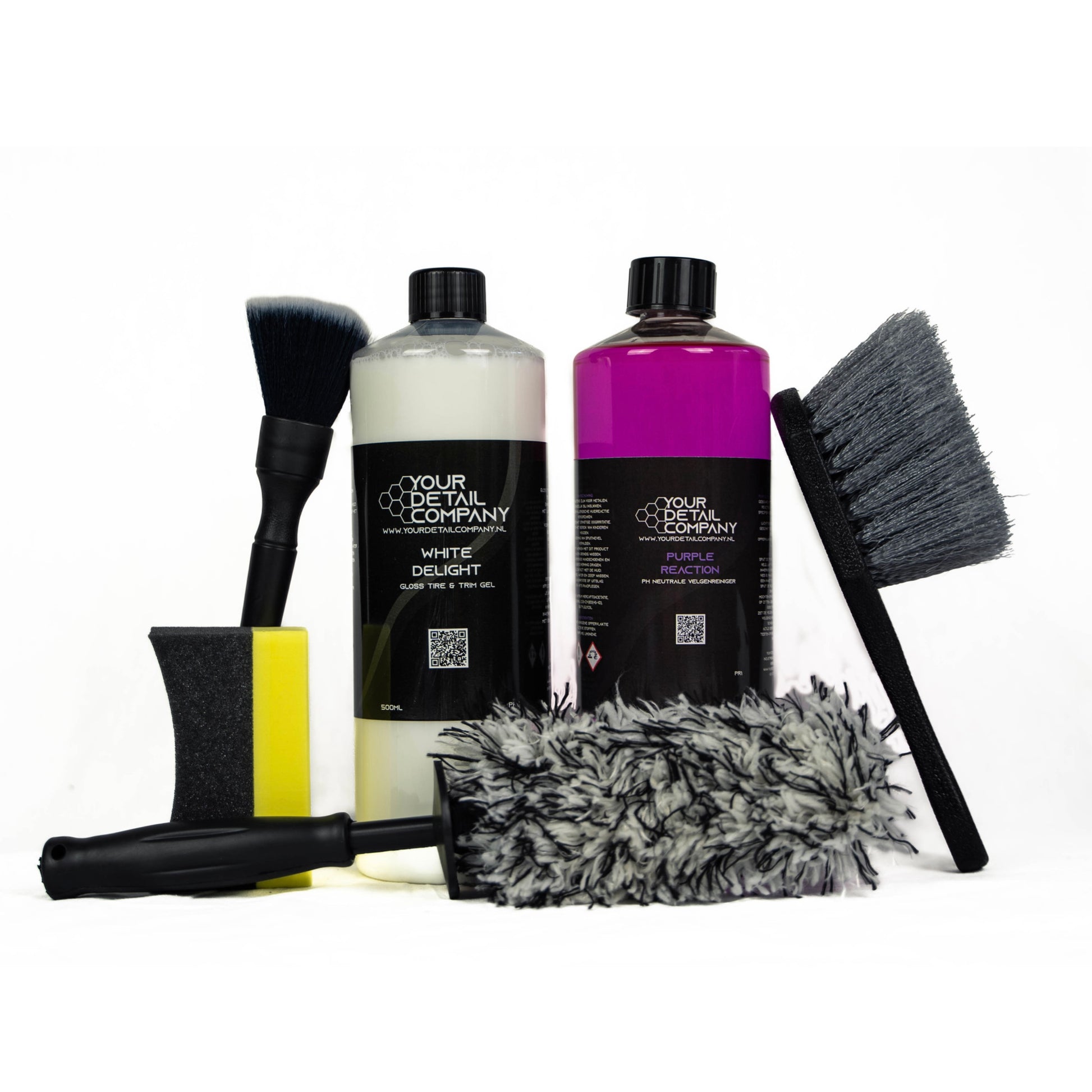Maak kennis met de ultieme set voor stralende velgen en verzorgde banden. Deze complete deal combineert krachtige reiniging met een professionele afwerking, zodat jouw wielen altijd perfect voor de dag komen.